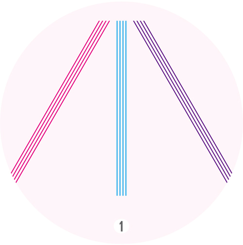1 정수리부터 시작해 모발을 세 갈래로 나눈다.