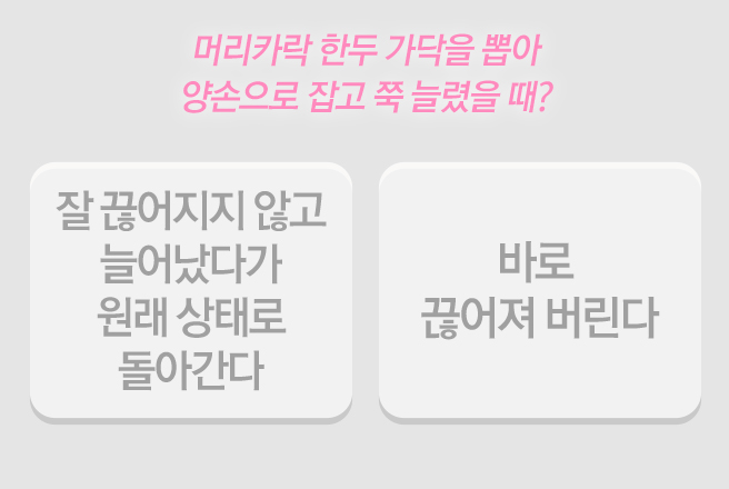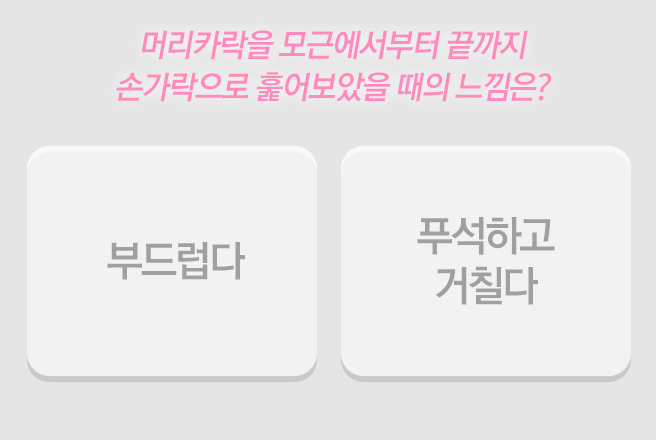 게임으로 알아보는 내 모발 타입! 펌과 염색, 각종 스타일링으로 변해버린 현재의 모발 상태를 알고 그에 맞는 케어를 할 수 있게 모발별 조언과 제품 소개도 잊지 않았다.