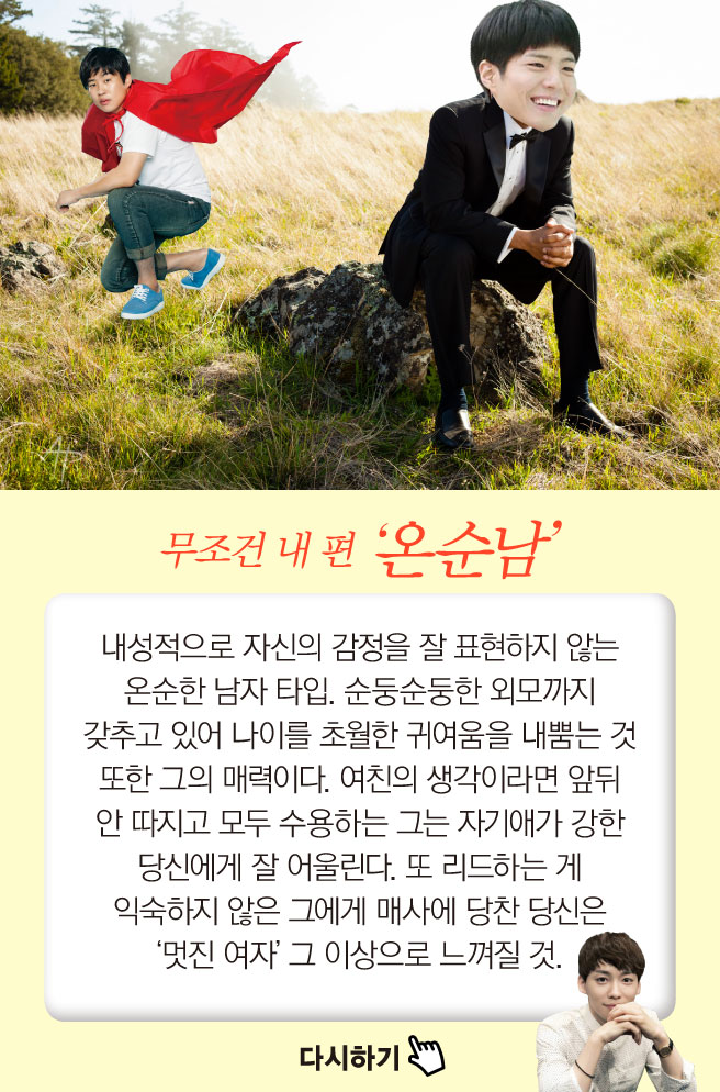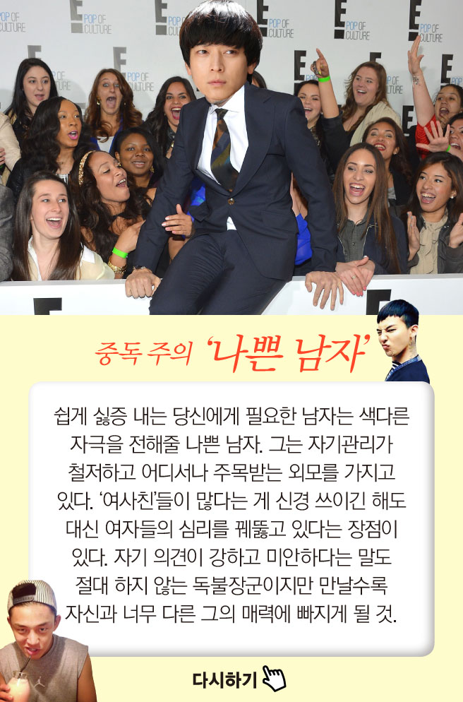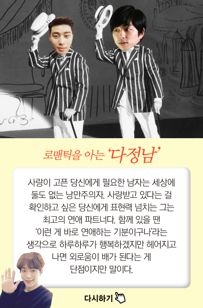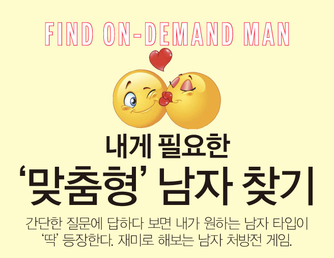 간단한 질문에 답하다 보면 내게 필요한 남자 타입이 ‘딱’ 등장한다. 재미로 해보는 남자 처방전 게임.
