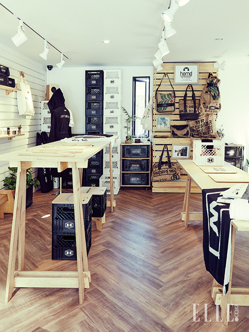 멀리서부터 보이는 ‘ENOUGH IS ENOUGH’라는 문구가 시선을 끈다. 신사동 가로수 길에서 이태원 경리단 길 너머 조용한 주택가로 자리를 옮긴 하이브로우. 초기에는 배우 이천희가 운영하는 숍으로 유명세를 떨치긴 했지만, 하이브로우가 흥미로운 이유는 더 있다. 단지 가구를 좋아해 만들고 판매하는 데서 그치는 것이 아니라 다양한 분야의 아티스트들과 협업을 진행하거나, 스스로 캠핑을 즐기며 진짜 ‘하이브로우적인’ 삶이 무엇인지 보여주는 이들의 라이프스타일 때문이다. 사용하기에 부족함 없는 ‘적당함(Enough)’, 지나치지도 않고, 부족하지도 않은 라이프스타일과 여유를 찾는 삶이야말로 이들의 모토이자 지향점이라 입구에 내건 것이다. 루프톱까지 합하면 총 3개 층으로 이뤄진 건물은, 1층은 하이브로우 제품을 수리하는 리페어 숍, 2층은 다양한 캠핑 용품과 라이프스타일 소품을 구매할 수 있는 쇼룸, 3층 꼭대기는 카페로 활용하는 구조다. 건물 바로 오른편엔 카페를 만드는 공사가 한창이니 3개월 후면 이곳의 공기는 또 달라져 있을 게 분명하다.