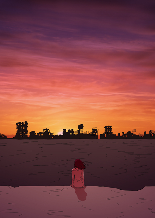 서정적인 그림과 달리 사회의 어두운 면에 일침을 가하는 <미래소녀>.
