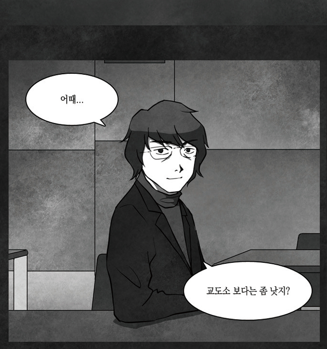 주간 연재는 스토리를 끊는 지점도 중요하겠다굉장히 중요하다. 그 지점은 감으로 잡는데, 이때다 싶을 때가 있다. 어떤 화는 50컷 정도 했는데 그런 지점이 나오고, 어떤 화는 100컷이 넘었는데도 끊을 지점이 안 나와서 힘들 때가 있다. 대부분 작품이 19세 등급으로 공개됐다. 더 많은 연령층에 보여주지 못하는 것이 아쉽지는 않나 내가 어떤 만화를 그리는지가 제일 중요하기 때문에 독자에게 맞춰서 작품 수위를 조절하지는 않는다. 사실 내 만화가 그렇게 사악하다고 생각하지도 않고. 그런데 <인간의 숲>을 연재할 때 살인자 캐릭터들이 의외로 인기가 많더라. 그때 걸러줄 필요는 있다고 생각했다. 독자들의 댓글을 신경 쓰는 편인가 요즘엔 잘 안 본다. 스스로 아쉬운 부분이 있는데 그걸 콕 짚어서 왜 그렇게 했냐는 식의 댓글이 달리면 마음이 아프다. 차라리 욕을 하는 게 낫다.