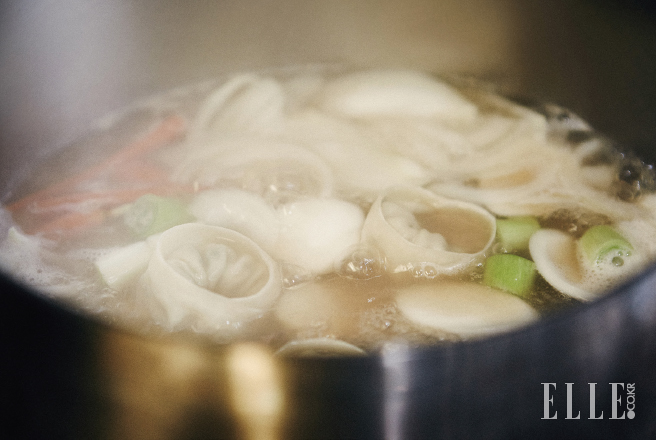 4 간은 만두나 굴에서 간기가 나오니 국물 맛을 보고 기호에 맞춰 넣는다. 이충후 셰프는 어머니의 방식 그대로 간장과 소금, 둘 다 넣는다.