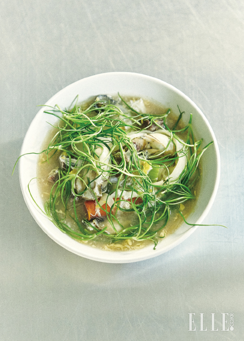 서래마을에서 ‘네오 비스트로’라 불리는 퀴진을 선보이는 레스토랑 제로 컴플렉스의 이충후 셰프는 자신의 소울푸드로 떡국을 꼽았다. 언제라고 특별한 순간을 떠올릴 수 없을 정도로 수없이 먹어본 음식, 어머니의 익숙한 맛을 셰프가 재현했다. 고향이 경남 진주인 그는 바다가 멀지 않은 지리적 특성상 떡국에 굴을 넣는다. 신선한 야채와 고기를 진하게 우린 육수에 굴을 넣으니 깊은 맛이 나지 않을 리 없다. 담백하게 끓인 뽀얀 육수에 떡과 만두만 소담하게 띄운 서울식 떡국과는 달리, 여러 가지를 그득 담는다. 그 이유에 대해 ‘오랜 프랑스 생활을 접고 한국에 돌아온 아들이 고향이 아닌 서울에서 바쁜 오너 셰프 생활을 하느라 집에 자주 오지 못하기 때문에 한 번에 많은 재료를 왕창 넣어주신 게 아닐까?’ 생각한다는 그의 말에 셰프이기 이전에 아들의 모습이 비친다.
