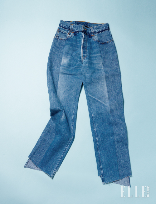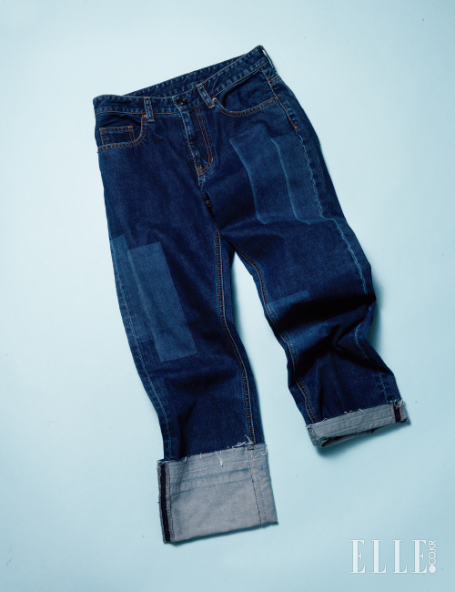 부분 워싱으로 패치워크 효과를 준 낙낙한 보이프렌드 진. 밑단을 넓게 접어 발목이 살짝 보이게 연출하면 베스트. 앞 코가 뾰족한 포인티드 토 펌프스와 베스트 궁합을 이룬다. 26만5천원, Beaker.