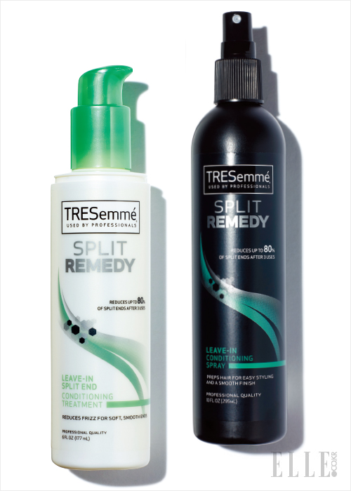 샴푸 후 타월 드라이 한 모발에 뿌리면 모발의 엉킴을 방지한다, 스플릿 레미디 리브인 스프레이, 1만3천원대. 모두 TRESemme.