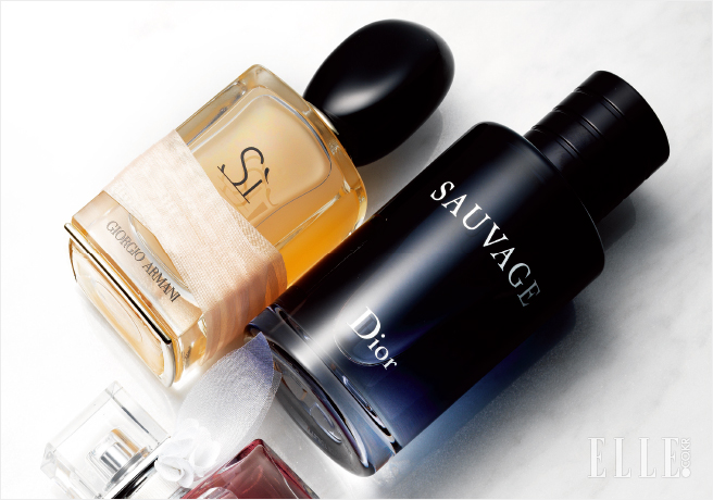 (왼쪽) 블랙 수트를 즐겨 입는 세련된 취향을 가진 그녀에게 어울릴 매혹적인 장미 향. 씨 로즈 시그니처 오 드 퍼퓸, 50ml 13만5천원대, Giorgio Armani.