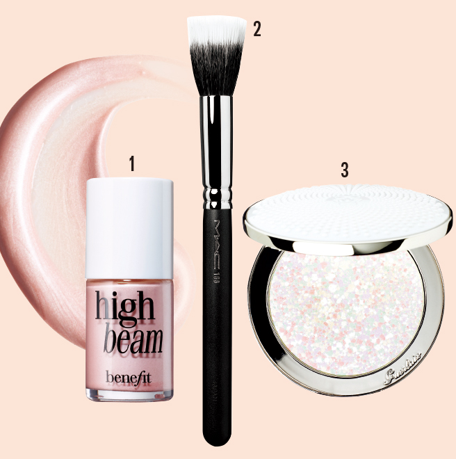 1 실버 펄이 반짝이는 핑크빛 리퀴드 하이라이터는 하이 빔, 3만6천원, Benefit.