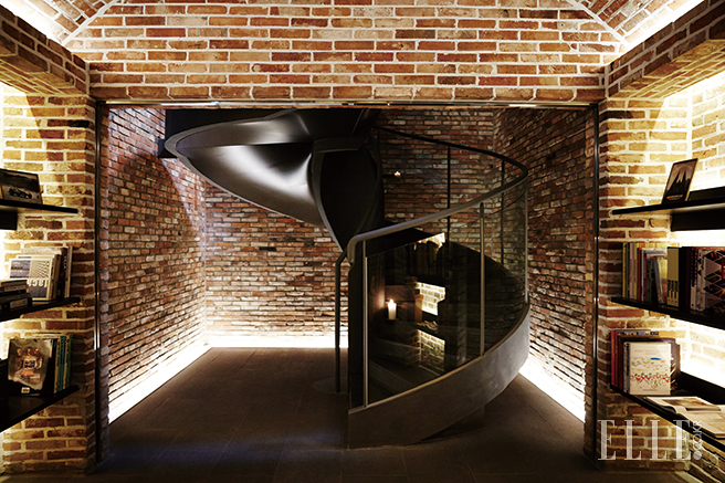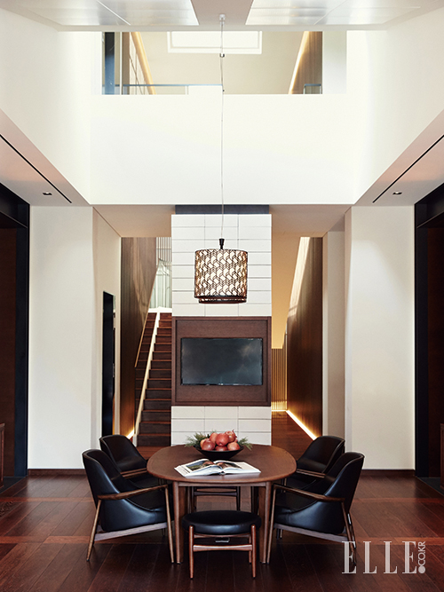 복층으로 구성된 독채형 더 하우스는 위층의 입구로 들어와 계단을 내려오면 아래층의 드넓은 거실 공간으로 이어진다.