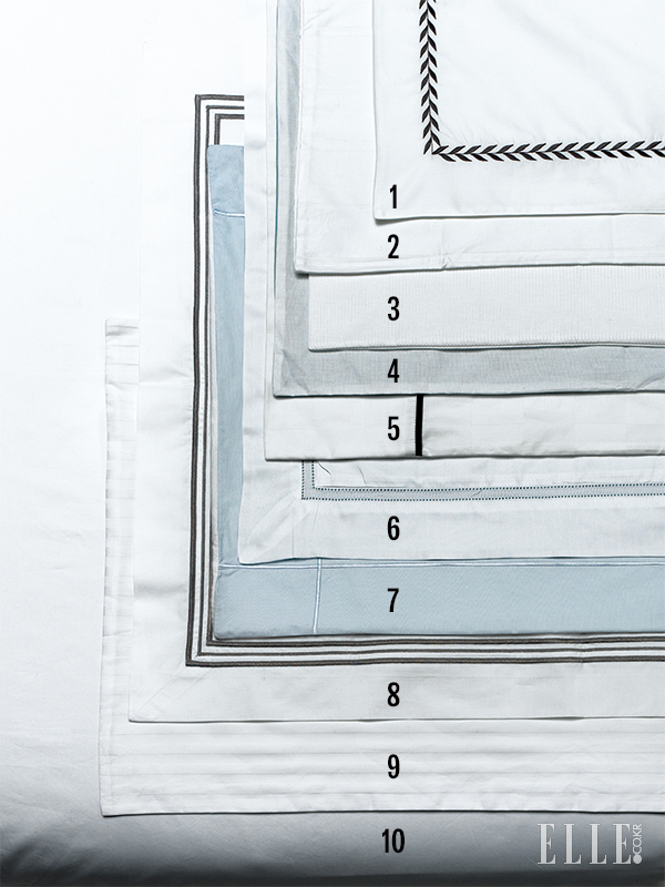 8 프레떼 이집트 산 최고급 순면 100%로 만든 새틴 원단을 쓰고, 이탈리아 브랜드일 뿐 아니라 이탈리아에서 생산한다. 이집트 면은 면 중에서도 감촉이 부드럽고 광택이 있는 최고급 소재로 유명한데, 원사가 튼튼해 올이 나가거나 보풀이 일어나지 않는다. 화이트 시트에 ‘면 포플린’이란 실크 소재를 이용해 세 줄로 트리밍한 디테일이 고급스러움의 정점이다. 가격 미정.