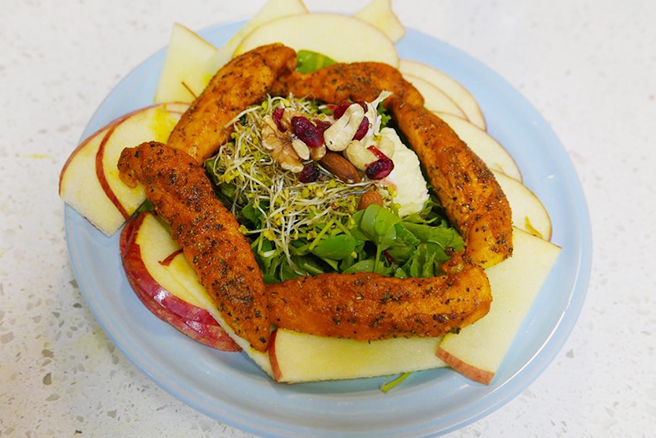 잘 구운 닭 안심과 견과류까지 올리면 드디어 완성!