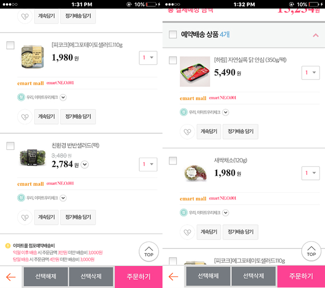 우선 제가 애용하는 이마트몰 어플로 필요한 재료를 골라줍니다.