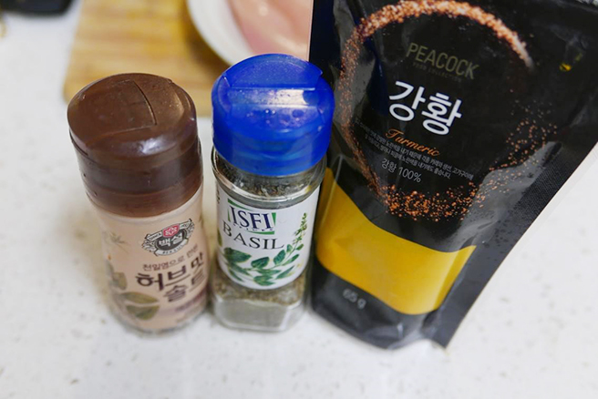 바질, 소금, 강황으로 시즈닝을 해볼까요?