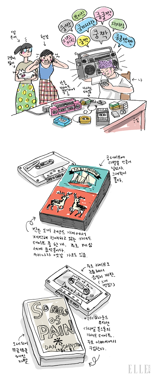 테이프를 듣고 있는 사람들을 보면 기분이 어떤가? 글쎄, 어떤 음악을 듣고 있느냐에 따라 다른 거겠지. 다시 말하지만 엘피판을 듣는다고, 테이프로 듣는다고 음악적인 취향이 바뀌는 건 아니니까.