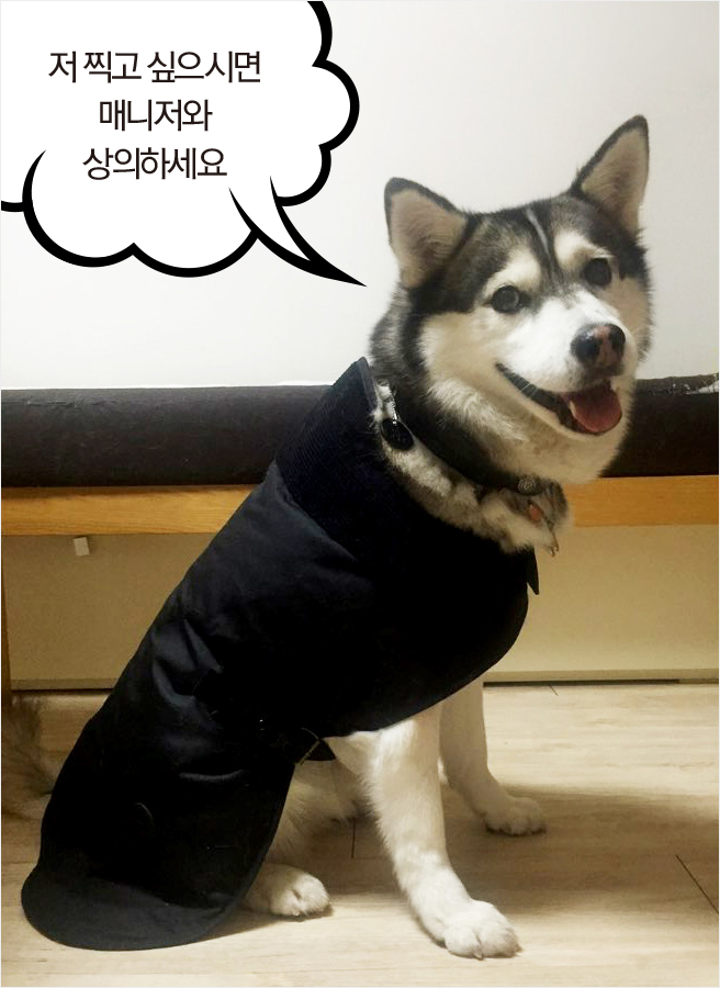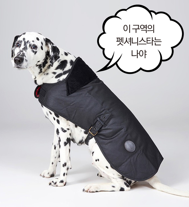 어김 없이 찾아온 장마철. 아무리 마른 장마라고 해도 숙희는 비 오는 날이 너무 싫어요. 무조건 실외배변을 하는 숙희는 비가 억수같이 쏟아진다 해도 무조건 나가야 하는데, 비를 쫄딱 맞은 후엔 발바닥 사이사이부터 온몸 털을 보송하게 말리는 게 보통 일이 아니거든요. 등, 엉덩이 젖는 거라도 최소화하자 싶어 찾은 것이 바로 바버(Barbour)의 강아지 코트! 네, 재킷으로 유명한 바로 그 바버요. 후훗, 런던 출장 갔을 때 보고 얼마나 반갑던지 0.1초도 고민 없이 바로 지갑 오픈~ 활짝 오픈~