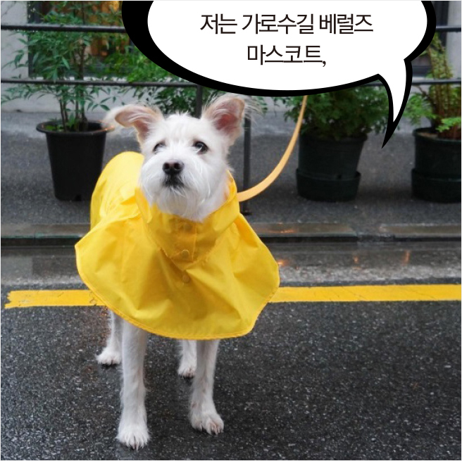 폭우에는 바버 재킷도 어쩔 수 없더군요. ‘강아지 우비’를 검색하던 중 눈에 확 들어온 반려견 편집숍 ‘베럴즈(www.betterskorea.com)’의 우비!!! 가로수길 매장에 가면 만날 수 있는 베럴즈의 마스코트 두두를 보게 된 거죠~ 숙희야 너도 이제 펫셔니스타 당첨이다~ 눈누난나!