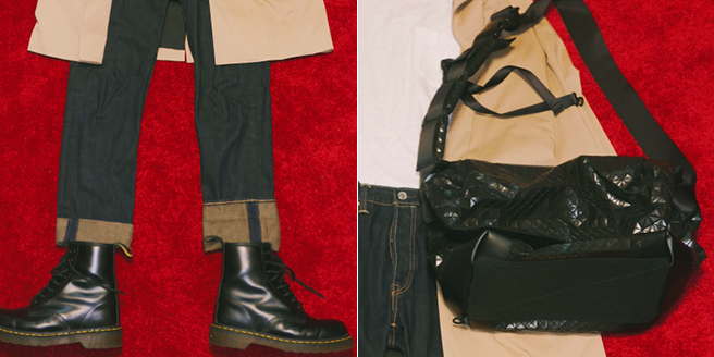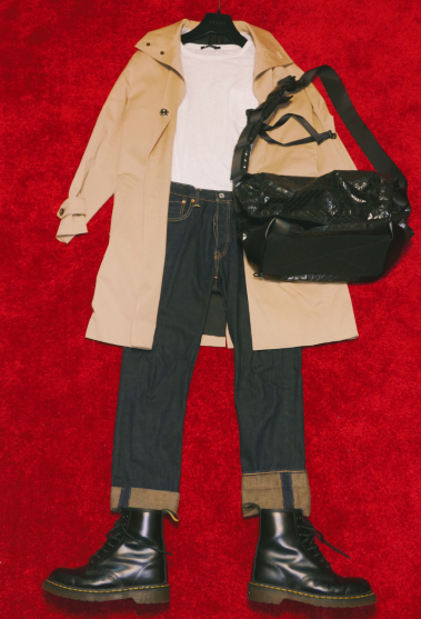 그리고 장화 역할을 잘 해줄 워커도 신으면 키도 커지고 일석이조. 비 오는데 가죽 가방을 들다가 눈물 머금을 일 없게 가벼운 폴리에스테르 소재 가방을 선택했습니다.