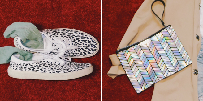 아니면 이런 빅 클러치를 들어도 귀여울 것 같은데요. 야상의 느낌이 거칠고 뭔가 쎈 기운이 느껴지니 개인적으로는 스타일링 할 때 되도록 rock적인 요소들을 섞는 편이랍니다.
