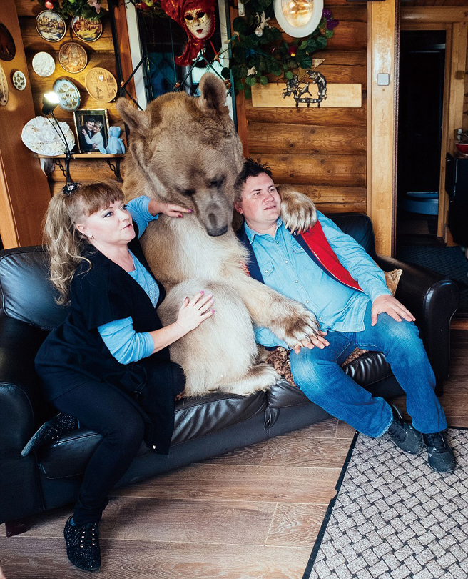 몸무게 650kg의 반려곰과 함께 사는 부부가 최근 인터넷에서 화제다. 곰의 이름은 스테판. 태어난 지 석 달쯤 됐을 때 사냥꾼에 의해 엄마를 잃고 산속에 버려져 있었는데 부부가 아기 곰을 구조했고, 자연으로 돌려보낼 시기를 놓쳐 결국 입양했다고 한다. 우리에 키우지 않고 함께 소파에 앉아 TV를 보고 식탁에서 같이 밥을 먹는 것도 놀랍지만 이렇게 키워온 지 20년이 지나 부부에게는 스테판이 가족과도 같다고 한다. 최근 스테판은 세계에 알려졌으나 현지에선 사냥반대 캠페인 화보 등에서 모델로 활약한 ‘연예 곰’이라고.