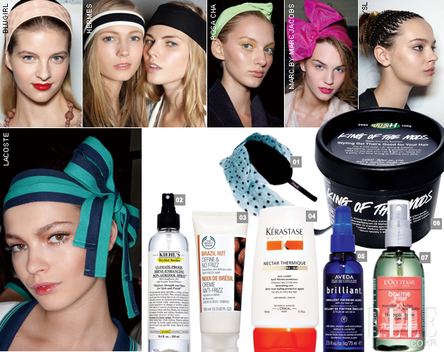1 헤어 밴드. 프란세스 비. 2 윤기가 흐르게 하는 클라이밋 프루프 샤인 인헨싱 논 에어로졸 스프레이. 250ml. 2만1천원. 키엘. 3 곱슬머리를 진정시켜주는 브라질 넛 디파인&노프리즈. 100ml. 1만6천원. 더바디샵. 4 드라이 전용 리브-인 트리트먼트, 넥타 테르미크. 150ml. 4만5천원. 케라스타즈. 5 빗질을 쉽게 할 수 있도록 도와주는 브릴리언트 애몰리언트 피니싱 글로스. 75ml. 3만6천원. 아베다. 6 촉촉한 질감의 천연 헤어 젤, 킹 오브 더 모즈. 100g. 2만7천원. 러쉬. 7 불쾌한 냄새를 없애주는 아로마 헤어 컨트롤 미스트. 10ml. 2만9천원. 록시땅.