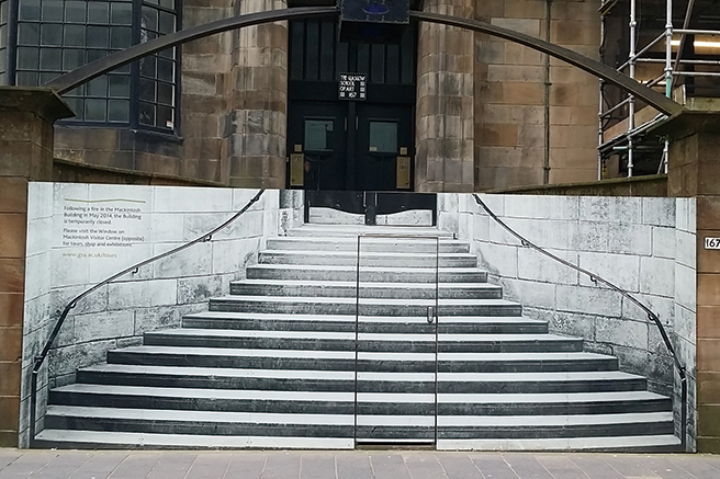 매킨토시가 설계한 글래스고 예술학교. 2년 전 화재로 인해 지금은 복구 작업 중이다.