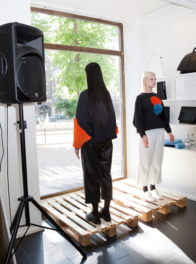 사무이는 2011년 여성복 컬렉션으로 시작된 헬싱키 베이스의 디자이너 브랜드다. 미니멀하고 자연주의적인, 특유의 북유럽 감성 때문에 국내에서도 이미 몇몇 편집 숍에 소개될 정도로 입소문이 나 있다. 이번 헬싱키 출장 중 방문한 사무이의 2016 S/S 프레젠테이션 현장은 한 마디로 ‘꽃의 향연’이었다. 복층 구조의 사무이 매장은 이번 프레젠테이션을 위해 꽃이 만개한 가든으로 꾸며졌다. 뮤지션들의 라이브 연주에 맞춰 춤추는 댄서를 중심으로 모델들의 캣워크가 시작되자, 파나마 햇과 잔잔한 플라워 패턴의 드레스, 미니멀한 롱 코트의 행렬이 이어졌다. 사무이 컬렉션은 클래식하고 단아한 분위기를 물씬 풍겼다. ‘좋은 품질의 패브릭과 재료로 시간이 지나도 질리지 않는 디자이너 브랜드가 되겠다’는 디자이너 사무 주시 코스키(Samu Jussi Koski)의 철학을 이해할 수 있었던 자리였다. 같은 날, 사무이 매장과 다섯 발자국 정도 떨어져 있는 오나르의 매장에서도 프레젠테이션이 열렸다. 쇼윈도 앞에 2016 F/W 컬렉션 의상을 입은 모델들이 마네킹처럼 서 있는 독특한 퍼포먼스가 눈길을 사로잡았다. 오나르의 컬렉션은 사무이와는 달리 무척 트렌디했다. 양털 머플러, 레더 백, 니트 웨어 등 기하학적 패턴과 부드러운 소재가 믹스된 유니크한 디자인은 젊은 패션 피플에게 어필하기 충분해 보였다. 아니나 다를까 디자이너 아이린 코스타스(Irene Kostas)는 현재 오나르가 유럽과 아시아의 ‘핫’한 편집 숍에 바잉되고 있으며 인기가 수직 상승 중이라고 귀띔했다. “오나르의 모든 아이템들은 핀란드와 그리스 북부에 있는 장인들에 의해 수작업으로 완성되기 때문에 높은 퀄리티를 자부해요. 100% 윤리적으로 생산된 퍼와 베지터블 가공 레더만 사용하는 점 또한 오나르만의 철학입니다.”