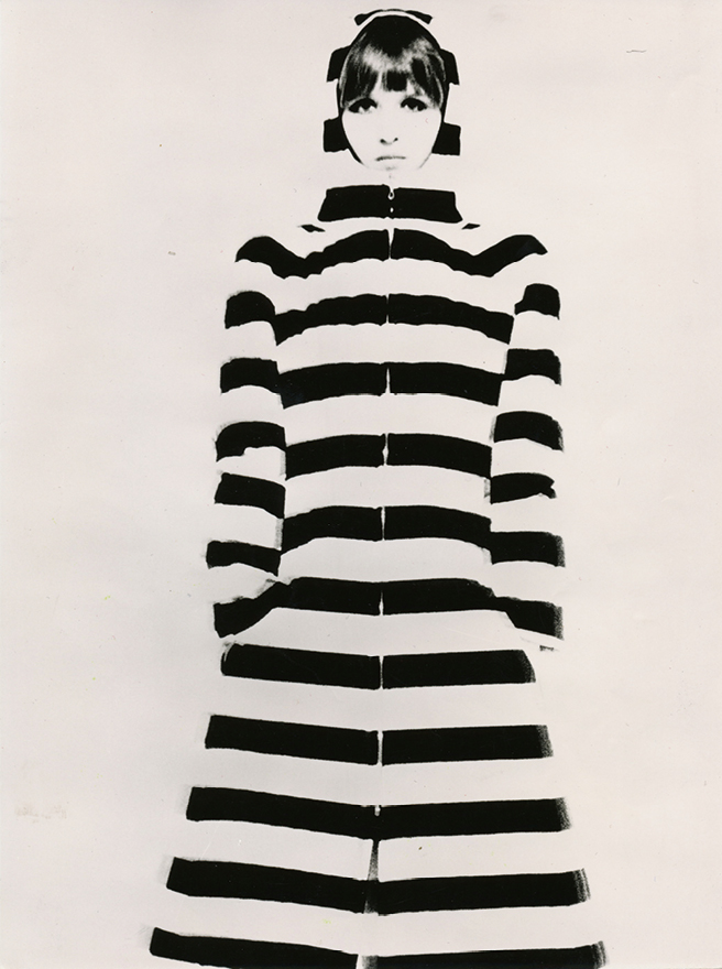 부오코가 가장 좋아하는 블랙 앤 화이트 스트라이프 패턴의 아카이브 코트.