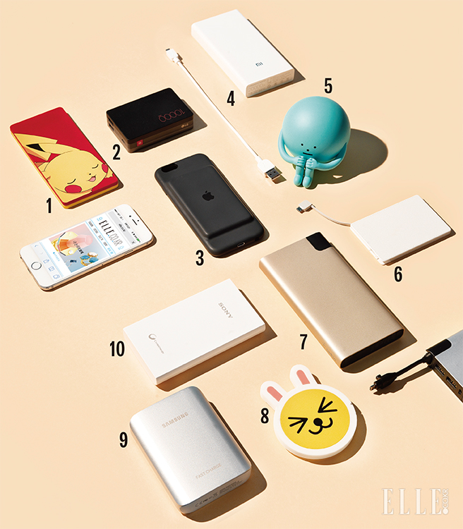 보조 배터리들 사이에서 갑자기 웬 피규어인가 싶겠지만 6800mAh 용량으로 아이폰6를 2번 정도 심폐 소생할 수 있는 배터리가 맞다. 또 뒷면에 입출력 단자와 배터리 잔량 표시등까지 있을 건 다 있다. 누군가를 기다리는 듯 앉아 있는 귀여운 디자인 덕에 충전하는 순간이 지루하지 않을 것. 8만원, 스티키몬스터랩.