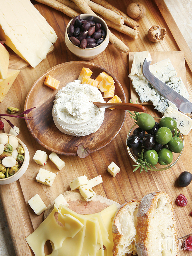 재료 라클렛·에담·몬테리 잭·페퍼 잭·에멘탈·블루 브리·고르곤졸라·허브 크림치즈·호두·(검은) 땅콩·피스타치오·마카다미아·올리브·(말린) 크랜베리 적당량씩