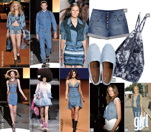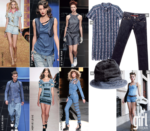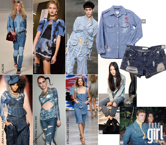 I agree with it! 미스 데님 천하통일 혹시 1980년대 후반, 가요톱텐 1위를 독차지했던 김완선을 아나? 그녀는 당시에 노래면 노래, 춤이면 춤, 패션이면 패션, 모든 분야에서 주름을 잡았던 최고의 스타였다. 김완선을 떠올리면 생각나는 것 중 대표적인 것은 바로 데님과 데님(Double Denim) 패션. 지금 생각해보면 서부영화에 나오는 카우걸도 포기했다던 촌스럽고 진부하기 짝이 없는 데님 풀 코디가 어떻게 그때는 용납이 되었던지…. 하지만 그로부터 20년이 흐른 지금! 다시 한번 데님 ‘풀 코디’가 용납되는 시기가 돌아왔다. 이번 시즌의 대표 트렌드 키워드가 바로 더블 데님, 즉 청청 코디이니 말이다. 끌로에, 돌체앤가바나, D&G, 랄프로렌 등의 컬렉션에서 보여줬던 청청코디는 가히 환상적이었다. 많은 디자이너들은 그 동안 촌스럽다는 이유 하나만으로 멀리해왔던 '더블 데님' 코디를 마치 사전에 짠 것처럼 복고적인 요소와 클래식한 감성으로 재해석하며 런웨이에서 선보였다. 지난 몇 년간 데님 트렌드에 대해 이야기 할 때에는 한가지 데님 아이템에 대한 이야기가 전부였다. '스키니 진인지 아닌지', '워싱은 어떻게 되었는지’, '길이가 긴 것인지 짧은 것인지'. 하지만 이번 시즌 데님을 이야기할 때에는 이야기 거리가 훨씬 풍성할 듯하다. 데님 셔츠, 데님 스커트, 데님 드레스, 데님 재킷, 데님 백 등 머리끝부터 발끝까지 풀 데님 코디가 용서되는 시즌이니 말이다. 수 년 전에 구입해 놓고 옷장 어딘가에서 빛을 보지 못하고 있는 데님 소재의 아이템들을 어서 빨리 찾아보자. 바지 통이 넓어도, 소매 끝이 닳았어도, 색상이 바랬어도 상관 없다. 옷장 가장 깊숙이 박혀있어 몇 해 동안 잊고 지냈던 그 아이템들을 레이어링하는 건 이번 시즌의 가장 핫 스타일링이 될 테니까. 그런데 당부하고 싶은 것이 한가지 있다. 더블 데님 스타일링을 끌로에 런웨이 모델처럼 멋지게 연출하고 싶으면 열심히 공부해야 한다는 것. 워스트와 베스트를 한끝 차이로 넘나들수 있는 더블 데님 스타일링엔 치밀하게 짜여진 철저한 계산이 필요하다는 것을 명심하길 바란다. 플랫폼 PR 조성훈