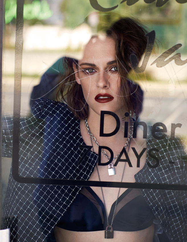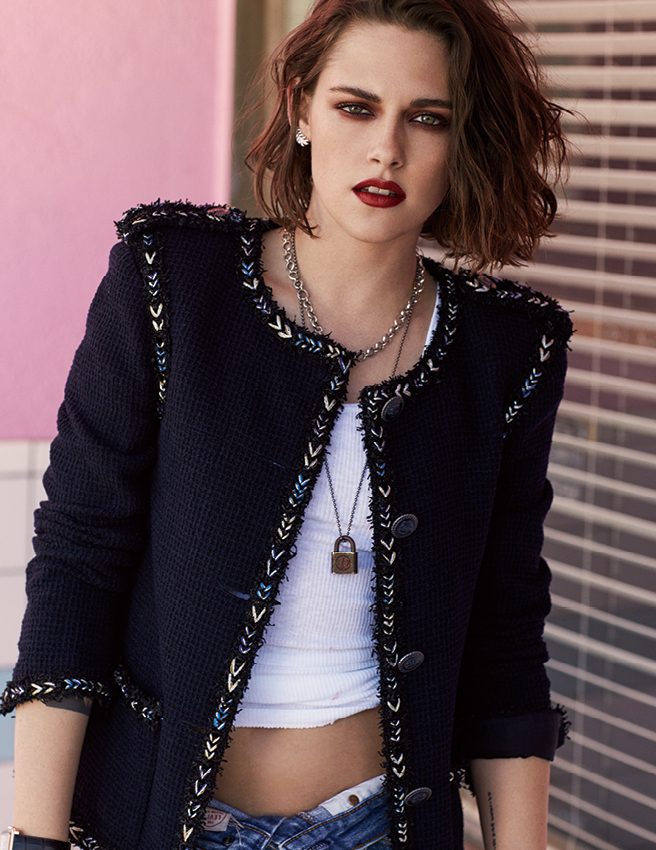 핑크와 블루 일색인 50년대풍의 한 호텔. LA 외곽에 있는 이곳은 제2차 세계대전 이후로 변한 것이 거의 없다. 크롬으로 도금된 주크박스, 빨간색의 긴 의자가 놓인 작은 레스토랑도 그대로다. 미국의 황금기를 떠올리며 잠시 감상에 젖을 무렵, 요란한 굉음과 함께 크리스틴 스튜어트가 도착했다. 거대한 딱정벌레처럼 번쩍이는 블랙 험머(Hummer)의 문이 열리자 그 틈으로 뉴에이지 음악이 쏟아져 나온다. 그녀가 조앤 제트로 분했던 2010년 영화 <런어웨이즈> 속의 한 장면 같은, 다분히 로큰롤스러운 등장이었다. 작고 호리호리한 스물여섯 살의 크리스틴은 들고양이 같다. 눈동자는 모든 걸 꿰뚫어볼 듯 강렬한데, 인터뷰를 할 때는 단어 하나하나를 곱씹으며 어느 질문 하나 가볍게 여기지 않는다. 그녀의 신중함과 열정은 감독과 관객 모두를 사로잡는 요인이지 않던가. <트와일라잇> 시리즈로 글로벌 슈퍼스타 반열에 오른 그녀는 로버트 패틴슨과의 결별 이후로 한동안 잠잠했다가 2014년 올리비에 아사야스 감독의 인디필름 <클라우즈 오브 실스마리아>로 돌아온 바 있다. 요즘은 누구나 함께 작업하길 원하는 여배우로 확고히 자리매김 중이다. 올해 칸영화제에 시연된 우디 앨런 감독의 <카페 소사이어티>를 포함, 올리비에 아사야스 감독의 <퍼스널 쇼퍼>와 이안 감독의 <빌리 린스 롱 하프타임 워크>도 줄줄이 개봉을 앞두고 있다. 패션 업계에서 ‘크리스틴 파워’ 역시 독보적이다. 3년 전부터 그녀의 매력에 푹 빠진 칼 라거펠트가 뮤즈로 발탁했으며, 지난해 그랑 팔레에서의 파리-로마 공방 컬렉션 쇼에선 라거펠트가 직접 연출한 필름 <원스 앤 포에버> 속의 젊은 가브리엘 샤넬로 분하기도 했다. 쉴 새 없이 달려온 여배우이자 샤넬 뮤즈로서의 커리어 그리고 그 안에서의 깨달음을 <엘르>에 털어놨다.