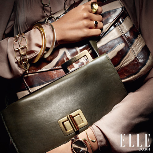5 송아지 가죽 백, 1995달러, CHLOE. 지브라 프린트 백, 1795달러, ROGER VIVIER. 크리스털 파베 세팅된 고리 모양 네크리스와 브레이슬릿, 네크리스는 400달러, 브레이슬릿은 각 280달러, 모두 SWAROVSKI. 다이아몬드가 세팅된 옐로 골드 뱅글, 가격 미정, ANDREA LIEBERMAN FOR MOUAWAD. 황수정 반지, 2700달러, 레드 가넷 반지, 650달러, 모두 MARCO BICEGO. 로즈 골드 다이얼 시계, 가격 미정, PATEK PHILIPPE. 얇은 성냥개비를 휘어놓은 듯한 디자인이 독특한 옐로 골드 뱅글. 1500달러. ELSA PERETTI FOR TIFFANI & CO. 실크 드레스, 2805달러, LANVIN.