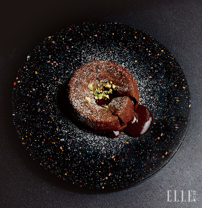 만드는 법 1 초콜릿과 무염 버터를 믹싱 볼에 넣은 뒤, 소스 팬에 물을 넣고 끓여 중탕으로 녹인다. 2 또 다른 믹싱 볼에 달걀을 풀어주고 설탕을 넣어 거품을 낸다. 3 중탕으로 녹인 초콜릿과 무염 버터를 살살 저어주고 앞서 거품 낸 달걀을 3회에 걸쳐 나눠 넣어가며 잘 섞는다(달걀을 한 번에 넣으면 초콜릿과 달걀이 분리될 수 있다). 4 잘 섞인 반죽에 박력분을 체로 쳐서 넣고 원형 틀에 옮겨 담는다. 5 230℃로 예열한 오븐에 원형 틀을 넣고 5분가량 구운 뒤 꺼내 슈거 파우더를 솔솔 뿌려주면 완성.