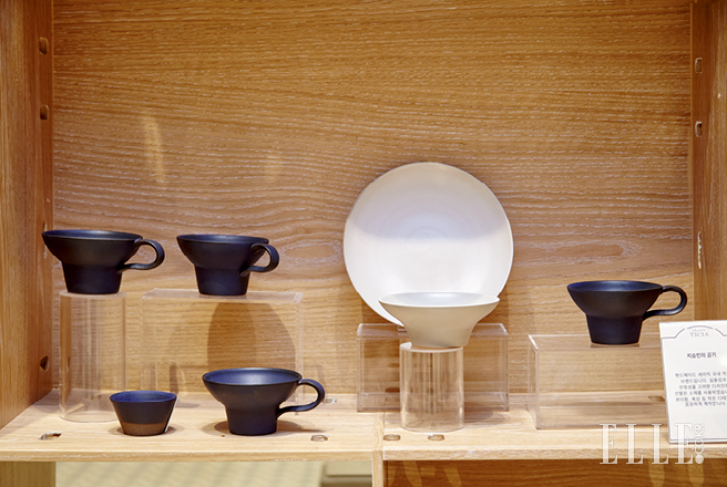 남부식 전통 옹기로 유명한 징광 옹기, 지승민 작가의 공기 등 국내 유명 작가의 식기를 한데 모아둔 섹션이 눈에 띈다.