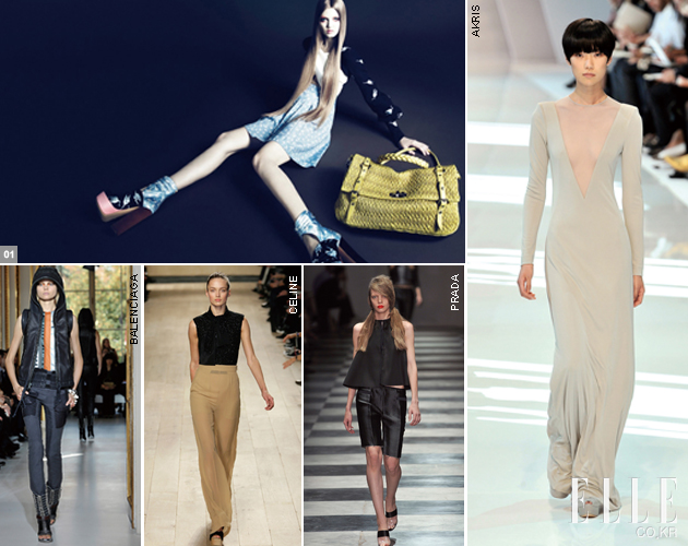 44사이즈만 기억하는 더러운 세상 디자이너들이야 당연히 누구에게나 잘 어울리는 옷을 만들어 더 많은 이들이 입기를, 정확히 말해 더 많은 이들에게 팔리기를 원할 것이다. 하지만 사실상 그들이 만드는 옷의 대부분은 여전히 스키니한 몸매에(만) 어울리는 것들이다. ‘뉴 미니멀리즘’이란 말로 설명되는, 이번 시즌의 클린한 라인의 테일러링. 셀린이나 프라다, 질샌더의 옷들을 살펴보라. 그 옷들을 가만히 보고 있으면, 칼 같은 재단만큼이나 단호한 말투가 환청처럼 저 멀리로부터 들려 온다. “오, 저런저런, 나를 입으려면 그 군살부터 해결하고 오시지?” 옆구리의 살을 방치한 채 어찌 셀린의 가죽 소재 티셔츠를 입을 것이며, 무슨 용기로 보기 싫게 튀어나온 허벅지살을 프라다의 버뮤다 팬츠에 구겨넣을 수 있겠는가. 질샌더의 똑 떨어지는 코트의 직선이 몸 양 옆의 살을 따라 흉측한 곡선으로 바뀌기라도 하는 날엔, 이 다음 하늘나라에서 어찌 질샌더 여사를 마주하겠느냐는 말이다. 이뿐 아니다. 이번 시즌의 키 트렌드인 미래적인 요소가 섞인 스포티즘, 구찌나 발렌시아가와 같은 룩 역시 가늘고 긴 직선적인 몸에 어울리는 디자인이다. 스텔라 맥카트니나 아크리스 등의 쇼에 등장한 롱 앤 린 실루엣의 롱드레스 역시 꼬챙이 같은 몸이 아니고서는 도저히 소화할 수 없는 디자인의 옷들이다.