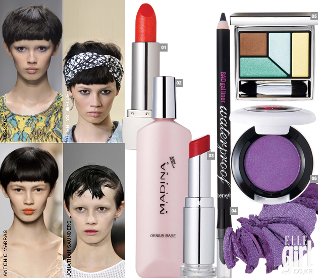 1 컬러 피버 샤인 118호. 4.2ml. 3만6천원. 랑콤. 2 지니어스 베이스. 30ml. 4만5천원. 마디나 밀라노. 3 스노우 크리스탈 립스틱 R12호. 4g. 2만2천원. 라네즈. 4 배드갤 라이너 워터프루프. 1.2g. 2만8천원. 베네피트. 5 아이섀도 대임’즈 디자이어. 1.5g. 2만2천원. 맥. 6 스프링 모던 아이즈 2호. 6만5천원. RMK.