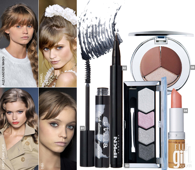 1 블랙 다이아몬드 마스카라 01호. 3.5g. 3만8천원. 스틸라. 2 마이 펜 아이라이너 1호. 0.8ml. 1만6천원. 입큰. 3 아이스튜디오 다이아몬드 글로우 섀도우 03호. 2.5g. 1만5천원. 메이블린. 4 글로시 립스틱 212호. 3.5g. 1만8천원. 꿀레르 까라멜by온뜨레. 5 브로우 디파이닝 파우더 브루넷. 2.5g. 3만8천원. 이펑크하우저.