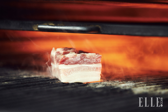 돼지고기는 불 향을 입히듯 그릴에서 겉면만 익혔다.