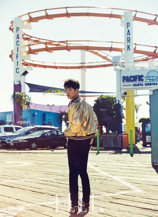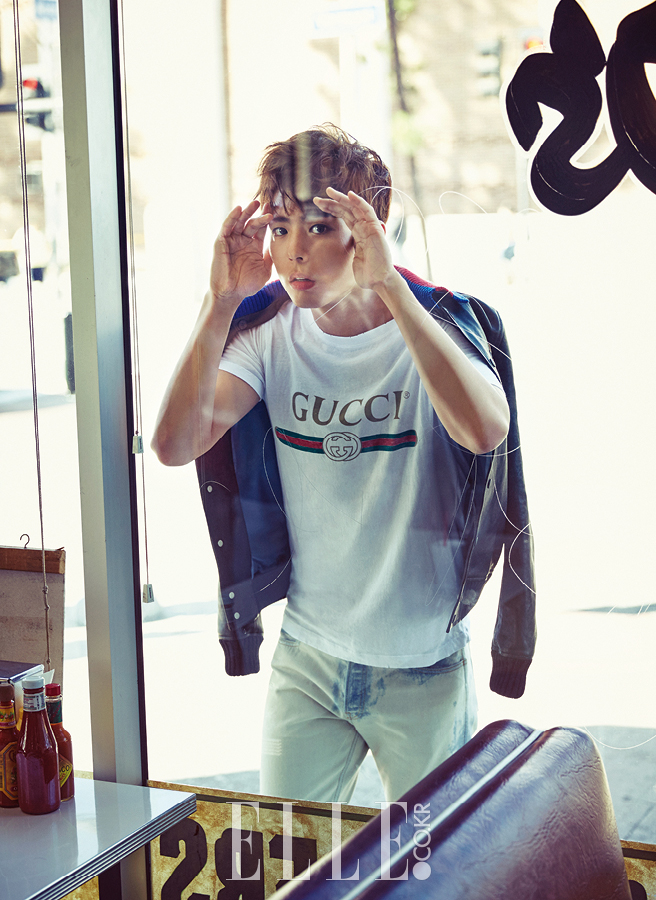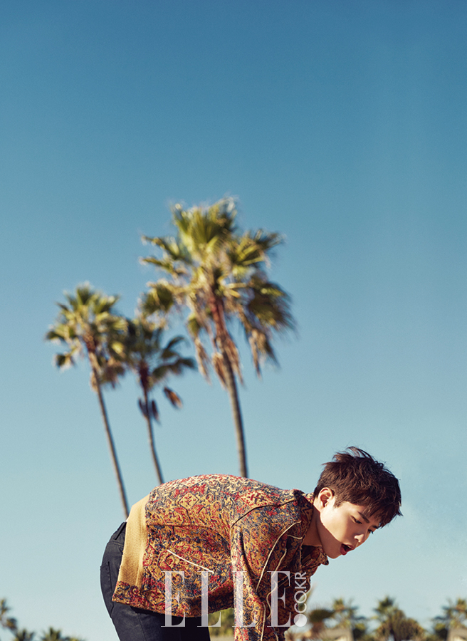 오후 11시, LA 베벌리힐스의 호텔 룸. 테이블 한가운데에는 조르르 헤어 컬러 차트가 늘어져 있고 촬영 스태프들이 어느 때보다 진지한 모습으로 회의를 거듭하고 있다. 보송보송한 얼굴로 배스 로브를 걸친 채 누구보다 앞장서 촬영 시안을 살피는 건 우리의 세자 저하, 박보검. <응답하라 1988>(이하 <응팔>), <구르미 그린 달빛>(이하 <구르미>)으로 다시 한 번 ‘보검 매직’을 펼쳐 보인 그와의 만남은 지난 2013년으로 거슬러 올라가야 한다. 배우 생애 최초의 인터뷰로 인연을 맺은 이래 거의 1년에 한 번꼴로 작품이 끝날 때마다 <엘르>를 찾아준 이 의리남은 변함없이 진솔한 태도로 자신의 근황과 드라마에 얽힌 여담을 들려주곤 했다. 조선 후기 예악을 사랑한 천재 군주 효명세자를 모티프로 한 왕세자 이영을 연기하면서 신드롬에 가까운 현상을 일으킨 <구르미>의 촬영이 끝난 직후, 이번에도 <엘르>는 맨 먼저 그에게 ‘LA 프로젝트’를 제안했고 그 역시 흔쾌히 첫 해외 화보 촬영을 <엘르>와 함께하는 데 동의했다. 그리하여 펼쳐진 달밤의 염색 공론은 전적으로 “지난번 화보와 똑같은 분위기일까 봐”를 우려한 박보검의 정중한 제안에서 출발한 것(그는 직접 스타일리스트와 상의해 촬영에 대비한 여러 색상의 컬러 렌즈까지 챙겨왔다)! 회의 결과는 박보검의 성숙한 변화를 예고한 한 편의 근사한 프롤로그로 완결될 수 있었다. 촬영 전날까지 이어진 궂은 날씨는 촬영 당일 아침 씻은 듯 사라지고 LA 샌타모니카 해변의 베니스 비치와 퍼시픽 파크, 독 와일러 비치 일대를 온종일 돌아다니는 빼곡한 일정에도 박보검의 얼굴엔 일말의 구름 한 점 드리워지는 법 없이 밝고 화사했다. 도리어 직접 휴대용 스피커와 고프로 카메라를 챙겨오는 열정적인 태도로 그가 진정 이 순간을 즐기고 있다는 사실을 모두에게 기분 좋게 확인시켜 줬고, 심지어 일말의 의심도 없이 낯선 이들 틈에 자주 섞이는 통에 촬영 팀이 이를 저지해야 하는 웃지 못할 해프닝도 벌어졌다. 그렇게 모든 촬영을 무사히 마치고 인터뷰를 위해 다시 그의 호텔 룸에서 마주앉았다. ‘여정이 바로 보상이다’라고 했던가. 할로겐 불빛 아래에서 본 그의 어깨는 묵직한 주연의 무게를 성공적으로 털어내 보다 단단해진 듯했고 적당한 여유가 실려 있었다. 그렇게 박보검의 세계는 또 몇 뼘 넓어진 듯했다.
