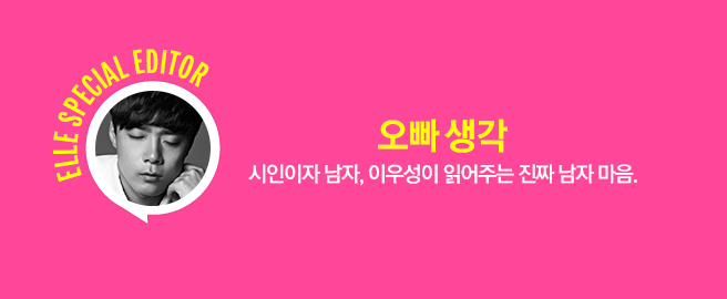 썸남의 생각, 애인의 마음이 궁금하다면 love.ellekorea@gmail.com으로 여러분의 고민을 보내주세요. 매주 월요일에 문 여는 ‘오빠 생각’ 연애상담소에서 들어드립니다. 익명보장은 필수, 속 시원한 상담은 기본.
