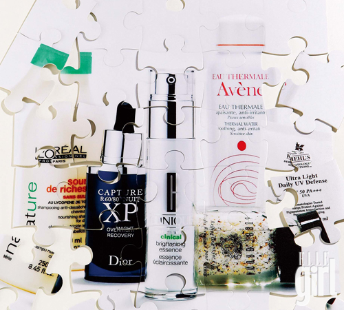 (왼쪽부터) 천연 계면활성제를 사용한 세리 네이처 리체스 샴푸. 250ml. 2만원. 로레알 프로페셔날 파리. 밤 동안 피부 재생력을 최적화해 눈에 띄는 주름을 개선시켜주는 캡처 R60/80 XP 나이트 리커버리 컨센트레이트. 30ml. 14만8천원. 크리스챤 디올. 강력한 항산화 성분이 유해 환경으로부터 피부를 보호하고 투명하게 가꿔주는 더마 화이트 크리니컬 브라이트닝 에센스. 30ml. 8만5천원. 크리니크. 미세 박피 효과와 피부 표면의 세포 재생을 촉진시키는 각질 제거제. 버핑 그레인스 포 훼이스. 28g. 5만5천원. 바비 브라운. 피부 진정 및 수분 공급 효과가 뛰어난 온천수 스프레이, 오 떼르말 드 아벤느. 150ml. 1만5천원. 아벤느. 오일 프리 타입 자외선 차단제로 수분 베이스 포뮬러가 피부를 하루종일 촉촉하게 유지시켜주는 울트라 라이트 데일리 UV 디펜스 SPF50 PA+++. 30ml. 4만5천원대. 키엘.