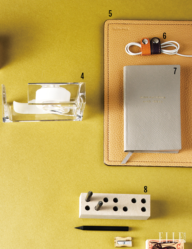 4 책상에서 가장 감성적인 사연으로 빛나는 테이프 디스펜서. 스페인 디자이너가 고향인 이비자 섬의 바다 물결을 추억하며 유려한 실루엣을 구현했다. 2만원. Lexon by 8 Colors.
