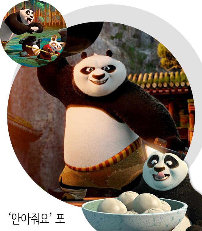 큼직한 등치를 보고만 있어도 든든한 <쿵푸팬더>의 포. 푹신한 배에 기댈 수 있고 사교성도 좋으니 함께 살기 최고의 조건을 갖췄다. 거기다 아무거나 잘 먹어서 더 예쁜 판다.