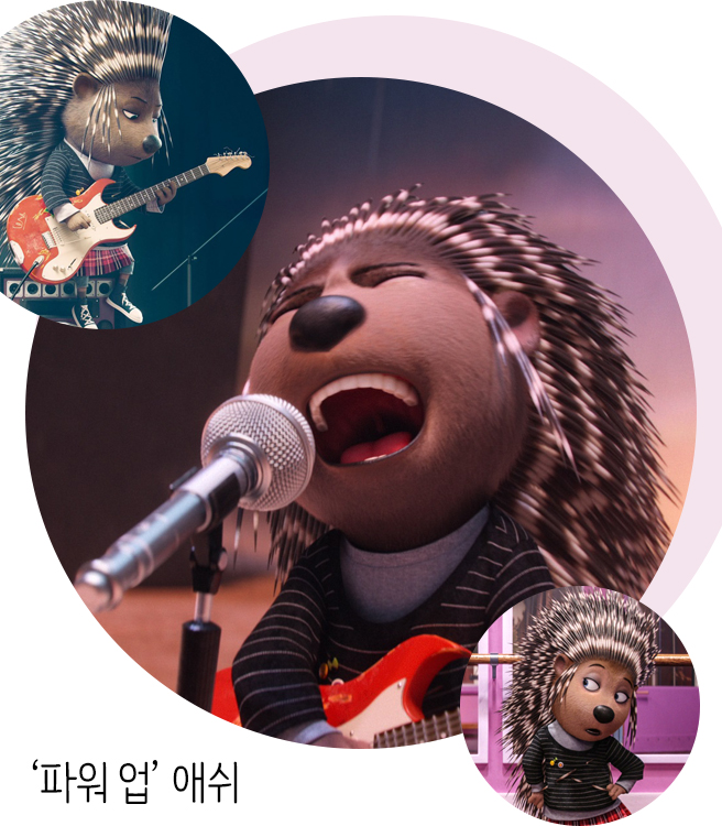 뮤지컬 애니메이션 <씽>에서 대국민 오디션에 참가한 고슴도치 애쉬. 뛰어난 작곡 실력과 파워풀한 보컬을 자랑하는 디바다. 뾰족한 가시는 위협적이지만 록커 본능을 장착한 건치 고슴도치 애쉬와 함께라면 매일 신날 듯.