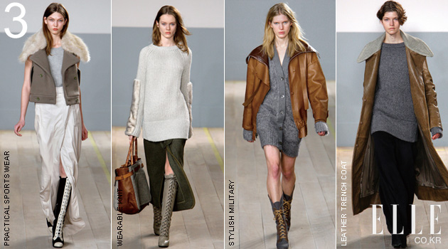 2 Reed krakoff 리드 크라코프. 어디선가 들어본 이름이라면 맞다. 그는 코치의 크리에이티브 디렉터로 이번 시즌을 시작으로 자신의 이름을 내건 컬렉션을 전개했다. 1등 액세서리 브랜드로 성장시킨 장본인이기에 의상에서는 어떤 마법을 부렸을지 초미의 관심사. 클래식한 아메리칸 스타일로 일관했던 코치의 성격은 의상에도 그대로 적용됐다. 고급스러운 소재를 사용한 실용적인 스포츠웨어, 특히 가죽을 이용해 미니멀하게 디자인한 일자 팬츠, 트렌치코트가 세련되게 변형된 밀리터리 의상은 멋졌다. 첫 번째 컬렉션이지만 전혀 어설프지 않고 오히려 아주 매끄러워서 혁신적인 무언가를 기대했다면 실망할 수도 있다. 셀린의 지난 시즌 의상을 본 것 같았다는 WWD의 평이 있었지만 벌써 메디슨 애비뉴에 그의 단독 매장이 오픈을 앞두고 있다.