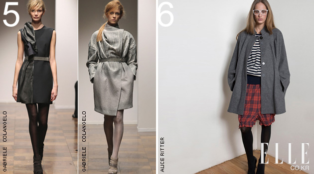 5 GABRIELE COLANGELO 2008년 2월 캡슐 컬렉션으로 패션 월드에 첫 이름을 알린 1975년생 가브리엘 코란젤로는 베르사체 진과 로베르토 카발리, 저스트 카발리에서 실력을 쌓았다. 이번 시즌 그는 ‘침식 지형’과 ‘바위’에서 영감을 받은 두 번째 정식 RTW 컬렉션을 선보였는데 표면 처리가 돋보이는 그레이, 베이지, 화이트 톤의 다양한 패브릭들로 만들어낸 룩들은 완성도가 뛰어났다. 퍼 가공에 특출난 기술을 보유한 패밀리 비즈니스를 배경으로 가지고 있다는 점이 그에게 좋은 영향을 끼쳤음은 부정할 수 없을 터. 그의 패브릭 선정은 무엇보다 출중했으며, 테일러링과 드레이핑 실력은 그가 단순히 ‘신인’이라는 타이틀만 갖기엔 아까운 재능을 지녔음을 보여주었다.