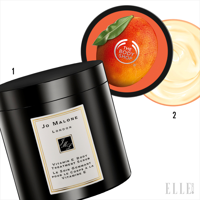 1 ‘각질 대청소’를 위한 아이템. 자잘한 알갱이가 자극 없이 롤링되며 식물성 오일 함유로 촉촉하게 마무리된다. 비타민 E 바디 트리트먼트 스크럽, 14만2천원, 조 말론 런던