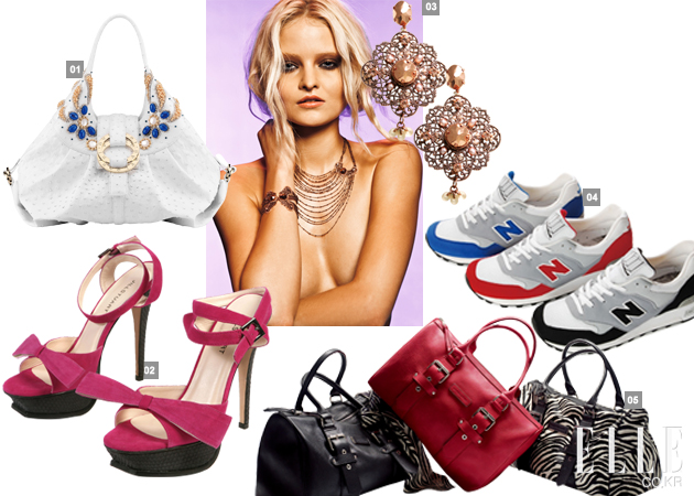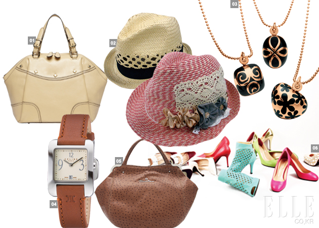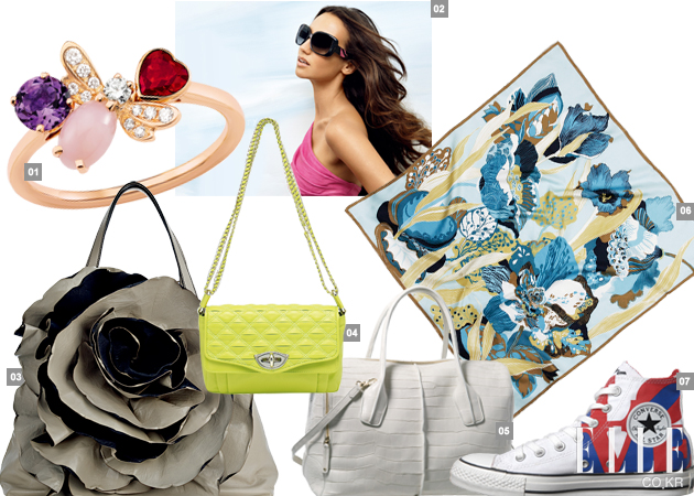 5 EXOTIC FANTASY S/S를 더 ‘핫’하게 만들어주는 아이템은 당연 와일드한 느낌의 엑조틱한 애니멀 스킨. 그중 타조가죽은 그 부드러움과 섬세한 디테일로 고급스러움이 배가된다. 아이그너의 ‘까레 소프트 백(Carre Soft Bag)’은 오스트리치 레더 특유의 엠보싱이 럭셔리한 느낌을 부각시켜 더 멋스럽다. 크림 컬러의 슬리브리스 셔츠와 마이크로 미니 쇼츠에 매치해 와일드한 룩을 즐겨보면 어떨까.