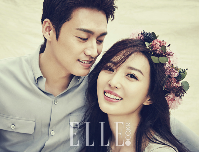 오상진이 입은 실키한 셔츠는 27만5천원, Time Homme. 팬츠는 가격 미정, Giorgio Armani. 로퍼는 가격 미정, Lardini. 김소영이 입은 파스텔컬러의 시폰 드레스는 Jenny Packham by Atelier Ku. 링은 18만원, Tani by Minetani. 스트랩 슈즈는 가격 미정, Jimmy Choo. 화관은 S Flora.