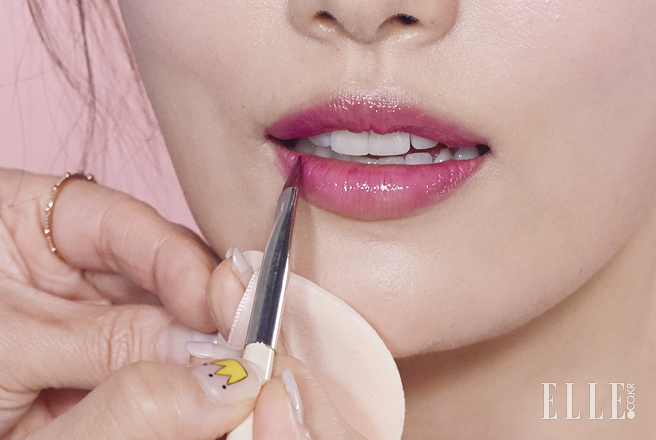 누드 컬러의 립 펜슬로 입술 라인을 깔끔하게 정리한 다음 블러셔와 비슷한 컬러를 입술 안쪽부터 부드럽게 펴 바른다. 투명한 립글로스로 마무리해 도톰하고 사랑스러운 입술로? CHU~